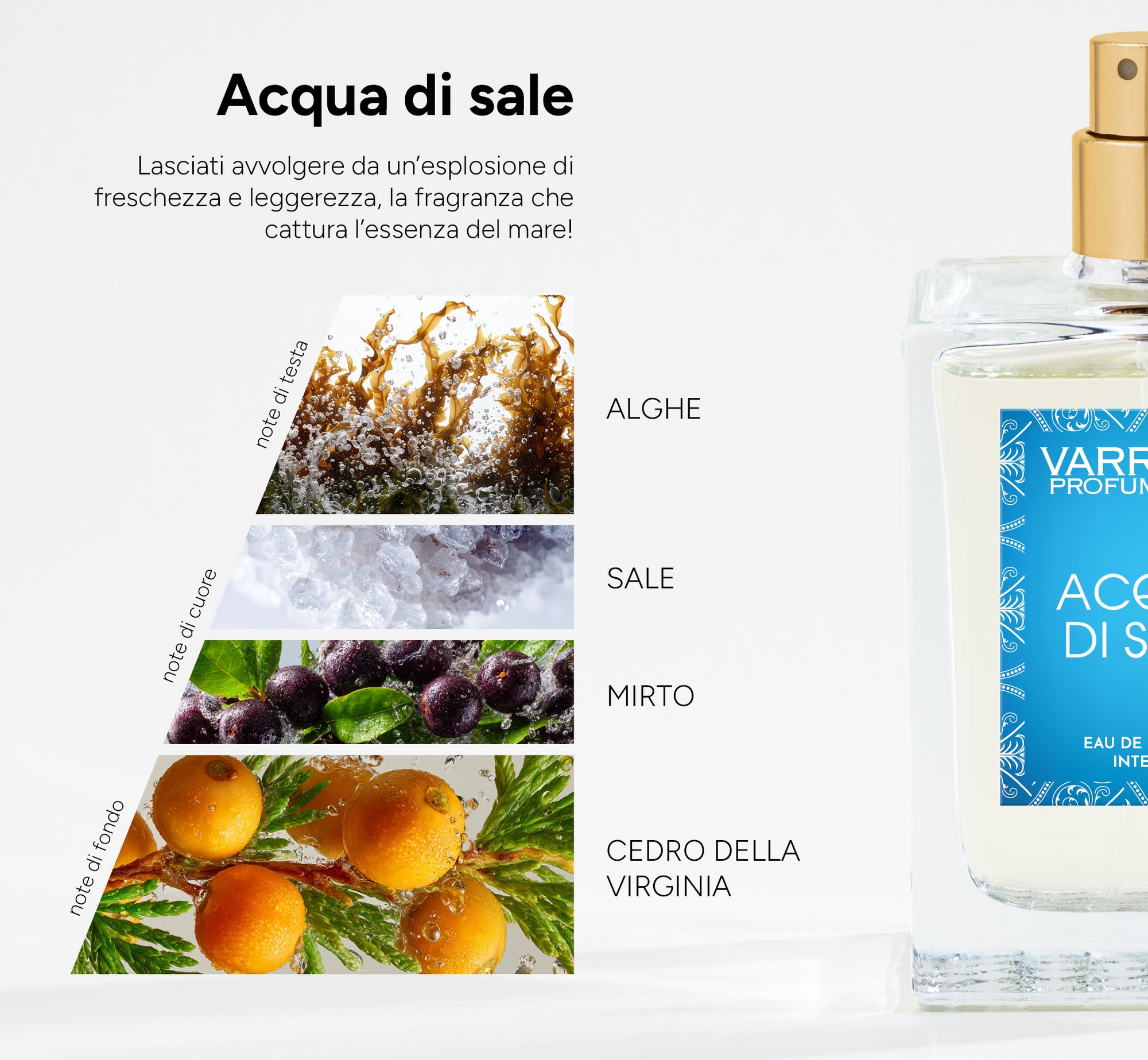 Saint Tropez di Varriale Profumi è una fragranza fresca, luminosa e irresistibilmente chic, pensata per incarnare l’eleganza rilassata delle coste più raffinate. Questo Agrumato Aromatico combina una freschezza cristallina a una struttura sorprendentemente persistente, perfetta per chi desidera leggerezza senza rinunciare alla durata.