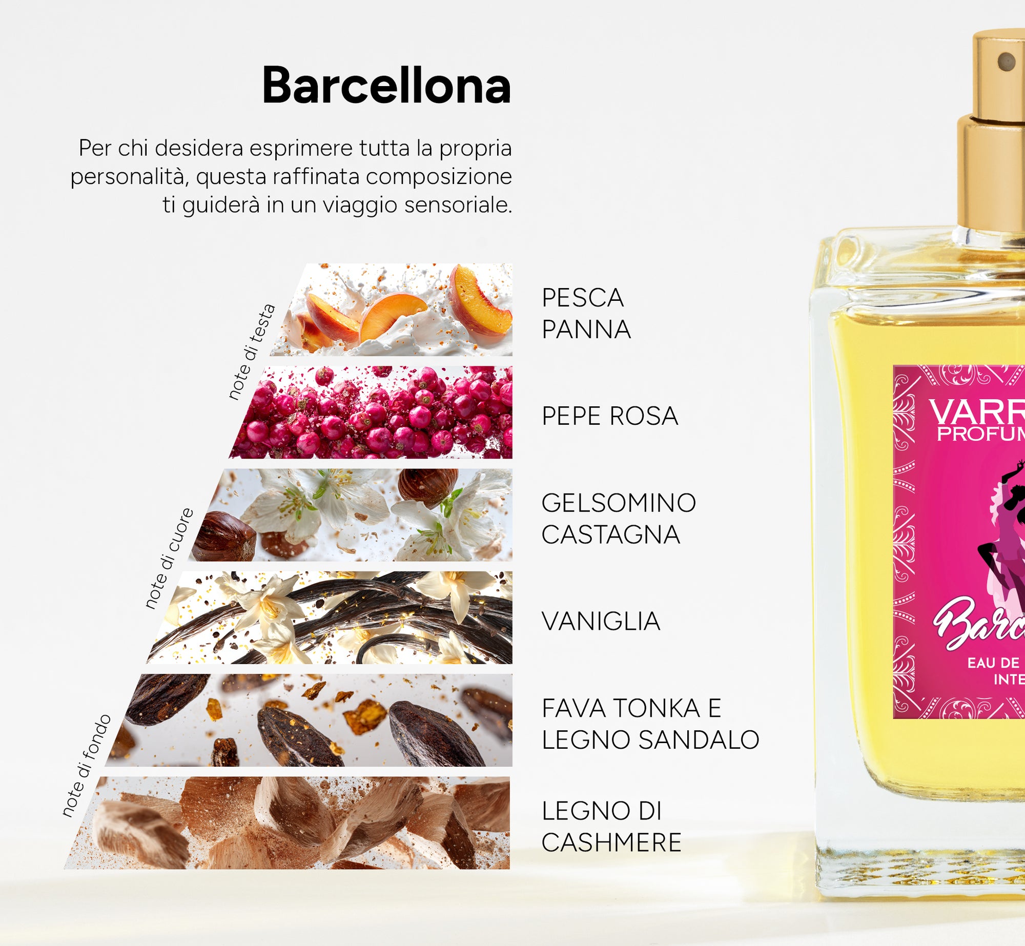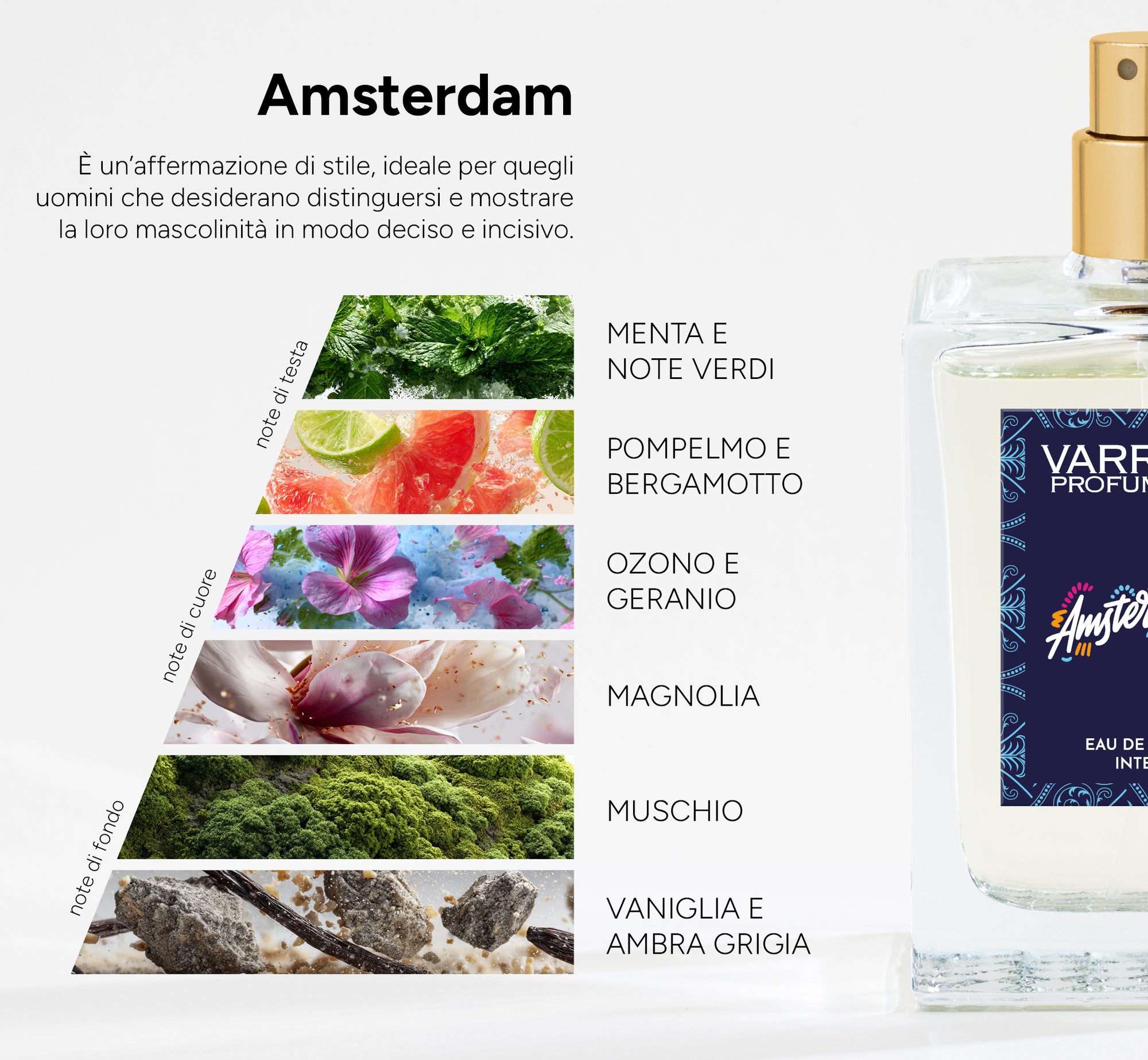 I nomi utilizzati appartengono ai rispettivi proprietari e sono menzionati solo per aiutare il consumatore a identificare le ispirazioni olfattive. Varriale Profumi non è affiliato, autorizzato né sponsorizzato da alcun marchio menzionato.